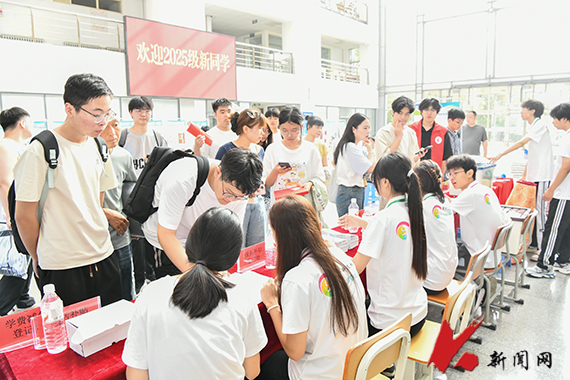 特色迎新,精彩纷呈。踏入校园,各样式的道旗、展板、横幅、立标等与学校特色、校园环境、学科特点相衬相映,营造出浓厚热烈的迎新氛围,彰显了学校对2025级新生的美好期许。同时,学校还设计了一系列各具特色和人文关怀的迎新活动,为新生打造一次难忘的入学体验。每名新生均可凭借报到时领取的“迎新面”餐券,到各餐厅的迎新面窗口,品尝一碗“热气腾腾”,感受地方特色“上车饺子下车面”的习俗。同时,学校还为新生精心准备了诚意满满的文创礼包“送惊喜”活动,在桃园餐厅、龙源餐厅指定窗口,可凭借录取通知书领取“新生大礼包”,其中包含定制餐具、文创礼品、免费餐券等。学校还开展“开学第一课”迎新季主题书展、“初见·图书馆”集卡赢文创、“图书馆时光邮局”等活动,帮助新生快速熟悉图书馆馆藏资源和相关信息,在大学之旅起点播下一粒阅读的种子。