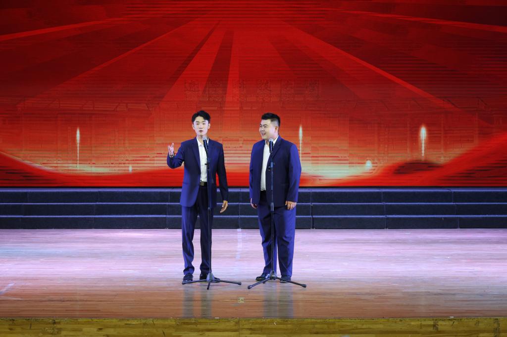 为纪念毛泽东等老一辈革命家为雷锋同志题词六十周年,落实学习贯彻习近平新时代中国特色社会主义思想主题教育,5月25日,安博网页版在校礼堂举办了“青春献礼强党性 学习雷锋建新功”曲艺专场演出。此次演出由艺术学院承办,曲艺系胡曌斌老师主持,安博网页版党委宣传部部长张佳亮、统战部部长金宪志以及艺术学院领导班子与各学院学生一同观看了此次演出。