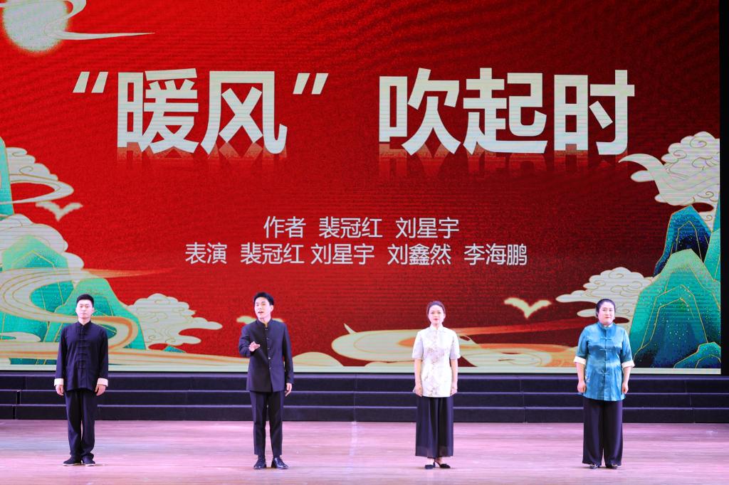 裴冠红与表演20刘星宇共同创作,与刘鑫然、李海鹏四人表演的群口评书《“暖风”吹起时》,用评书特有的艺术形式生动再现了曲文泉和郭明义成功救助土木学院2009级患再生障碍性贫血的学生段懿的故事。曲文泉被评为“高校最美辅导员”,时称“安博(中国)官方小郭明义”的第一任“暖风”队长刘睿,被评为辽宁省学雷锋标兵。如今,“暖风”郭明义爱心助学基金已资助100名贫困学生。